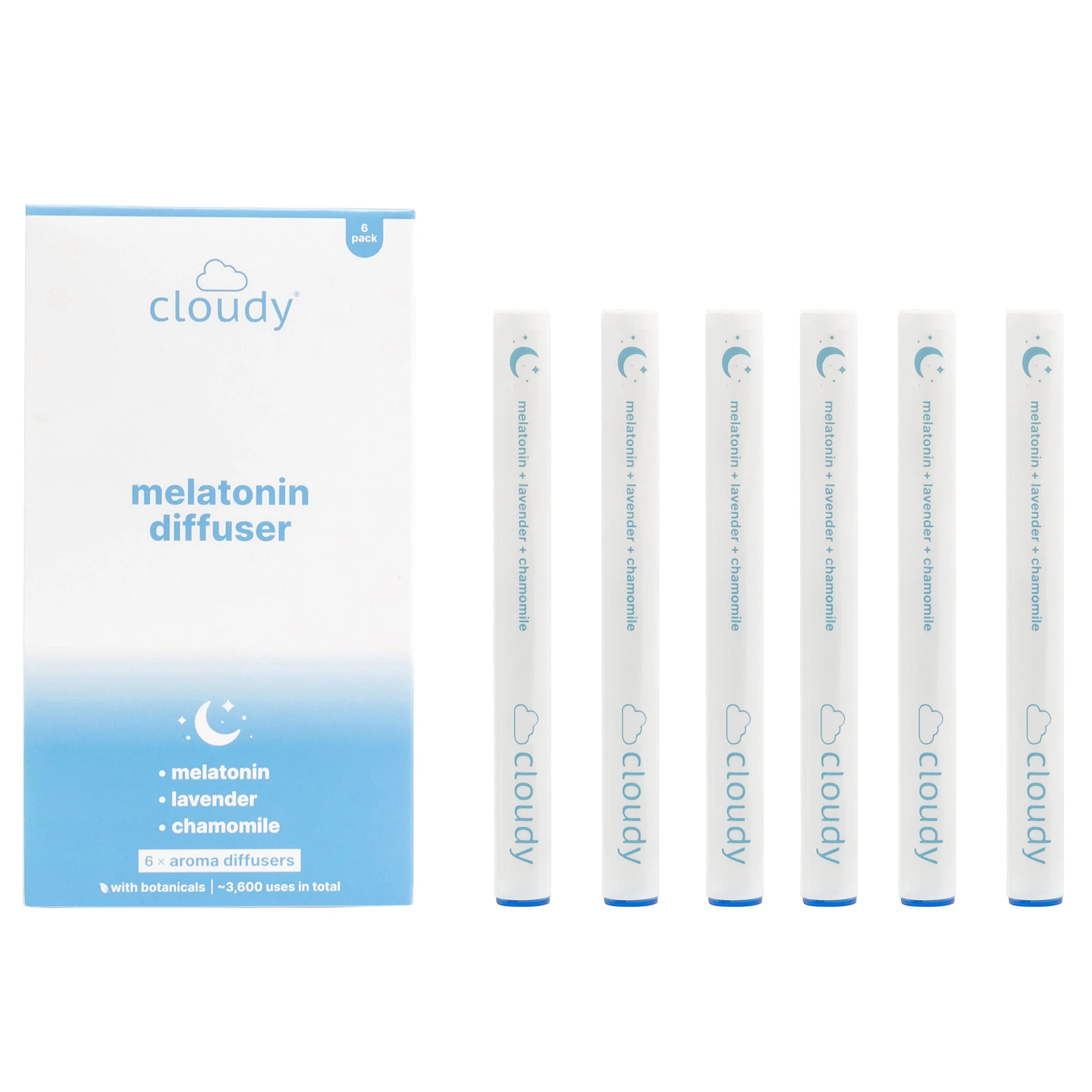 The Cloudy® Melatonin Diffuser is an aromatherapy product that features a blend of melatonin, lavender, and chamomile. Enjoy the soothing aroma to help find a sense of peace before going to sleep.